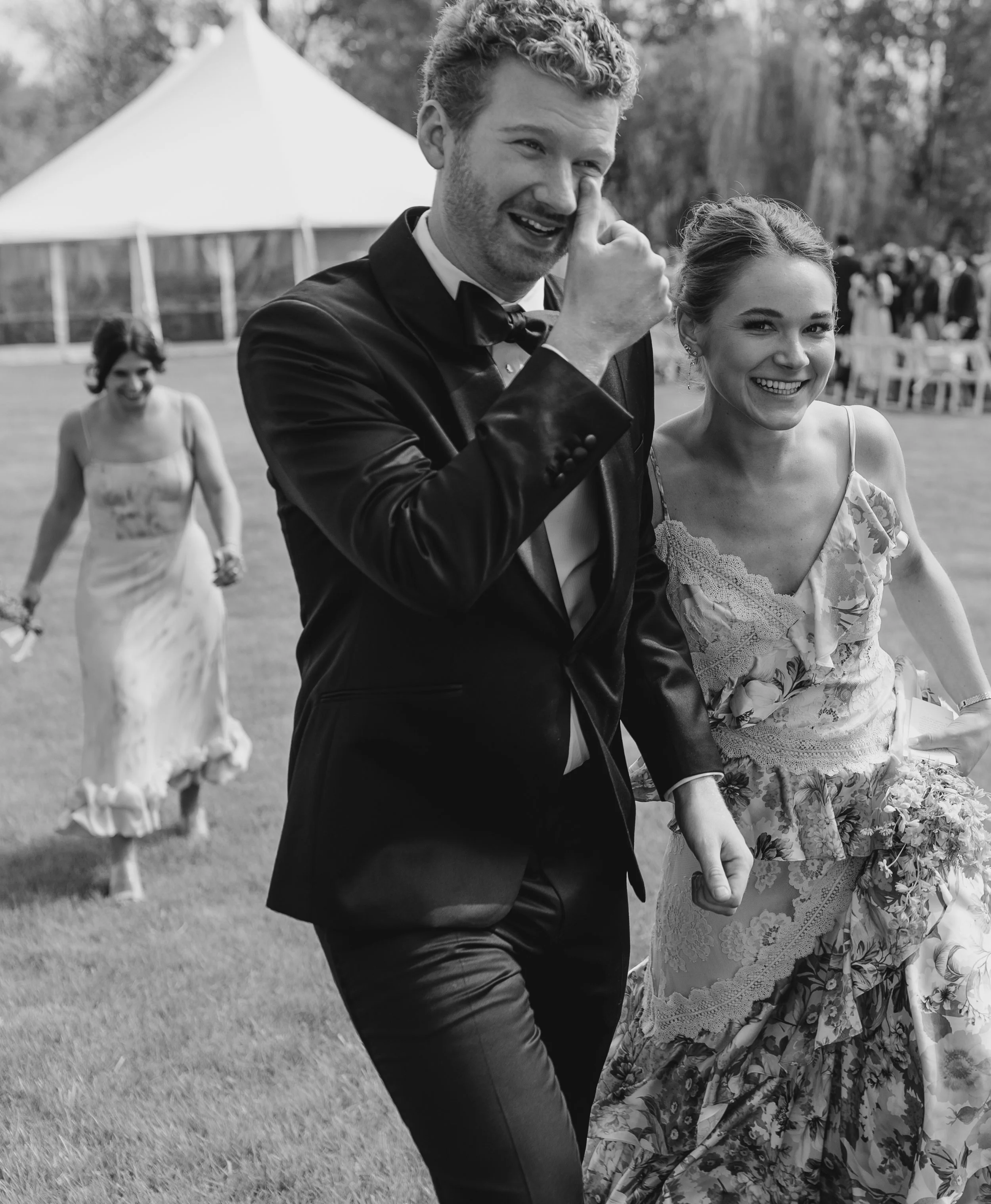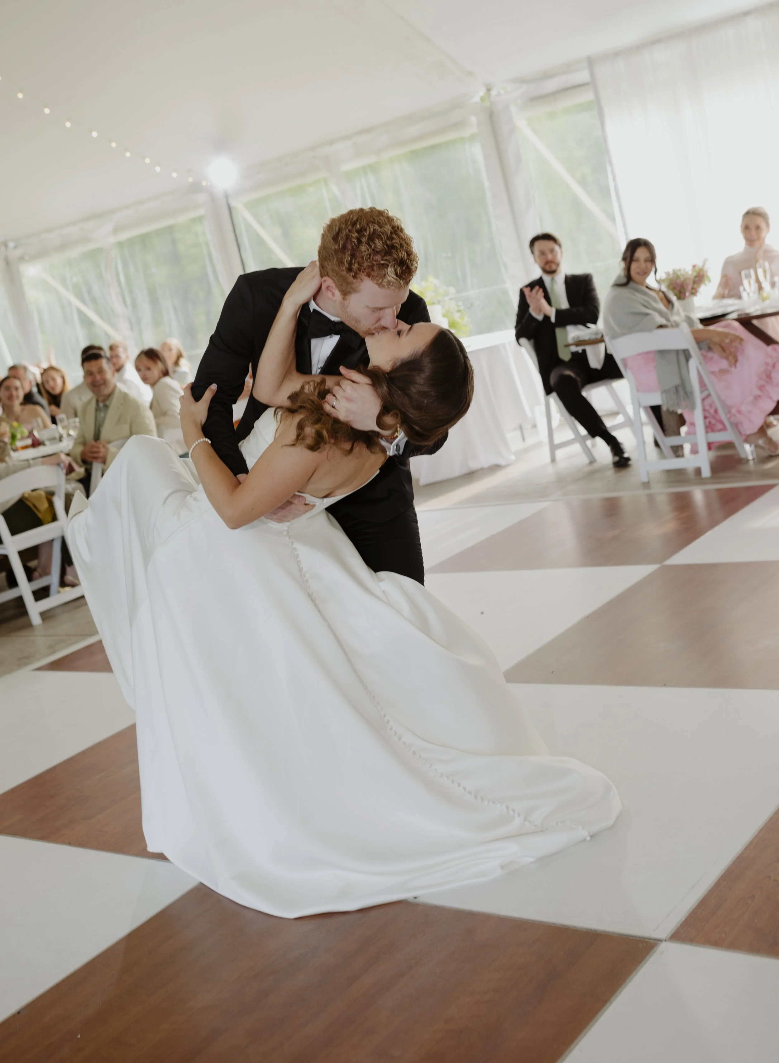 once cocktail hour came to an end, maddy and Brendan made a grand entrance into their reception tent before going right into their first dance; a perfectly elegant choreographed routine. their first dance was followed by heartfelt, sentimental speeches from parents, siblings, and friends that brought equally as many tears and laughs to everyone that filled the space.