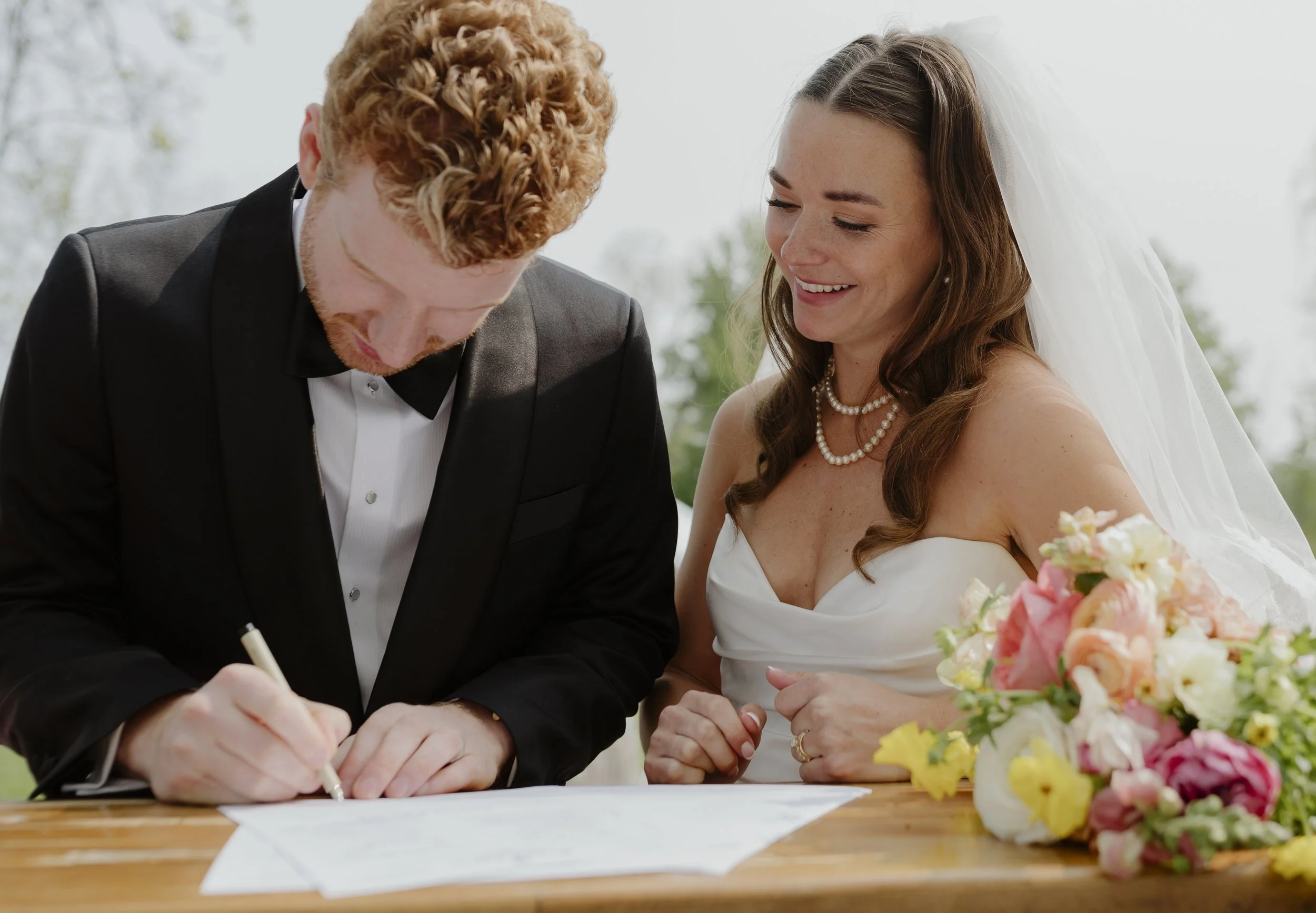 maddy and brendan’s guests were welcomed to their wedding colorfully. their ceremony was a personal and profound declaration of love for one another, followed by the exchanging of rings, and sealing the deal with a kiss. brendan’s dad married the two of them, and many stories and memories were shared from the past eleven years of their dating journey. their best friends sang during the ceremony, leaving everyone in attendance teary, and you could feel their magnetic love for one another as they walked down the aisle together, hand in hand, as husband and wife.