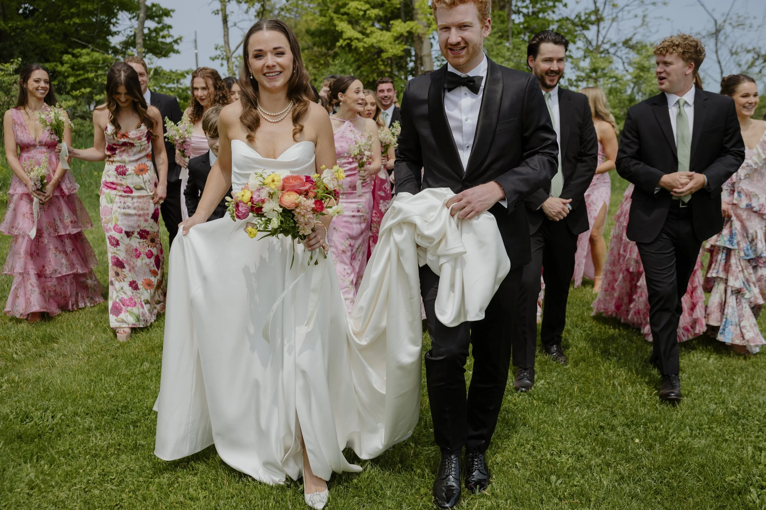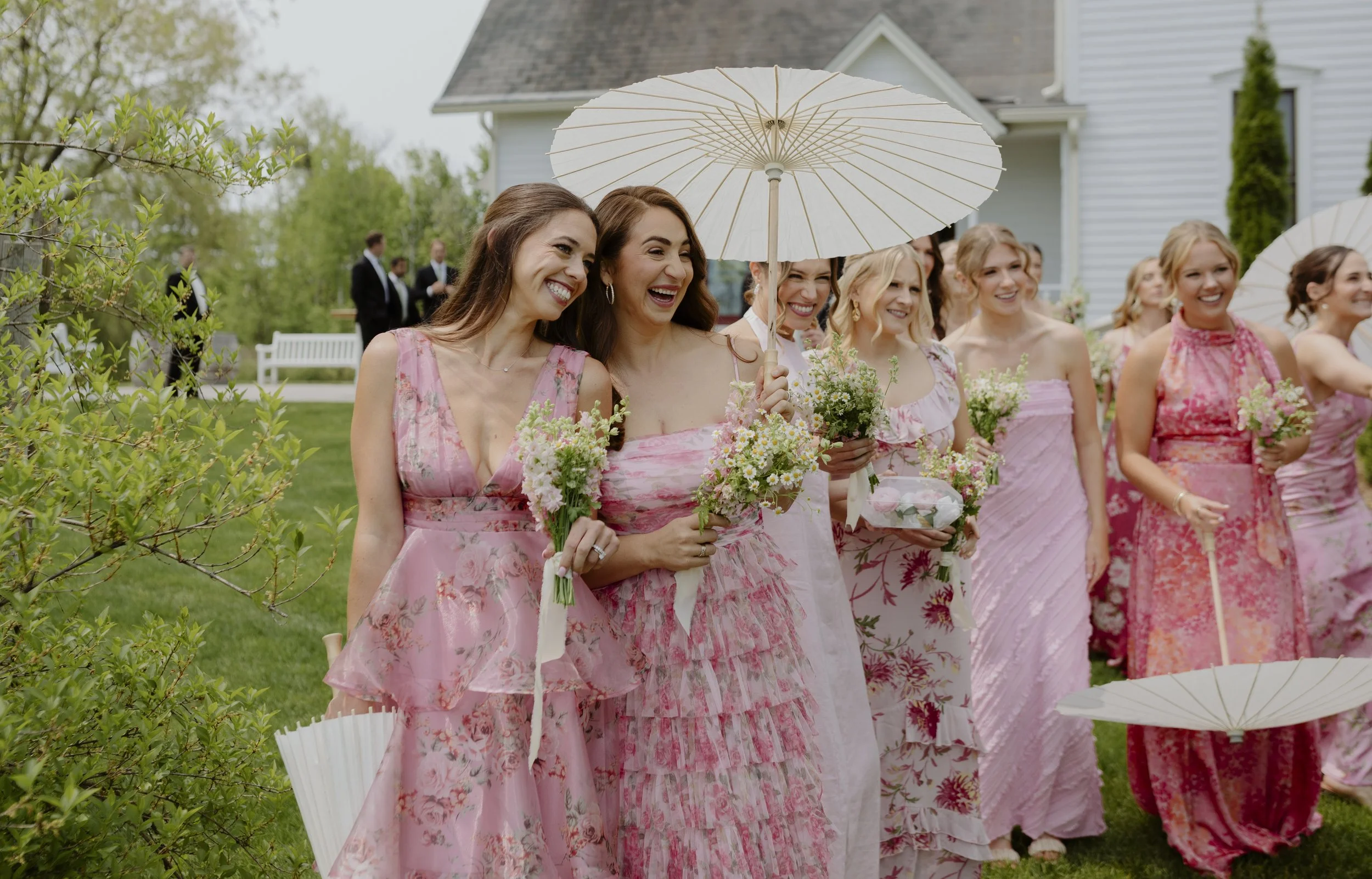 The quaint farmhouse on the property is the perfect place to stay for the weekend, and get ready with all of your favorite people the morning of your wedding. Maddy spent the morning of her wedding day surrounded by her loved ones as they all got pampered and giggled the morning away. her mom and sister helped her get into her dress and secure her final touches before the grand reveal to her bridesmaids, and of course, her soon to be husband in just a few hours. her details were timeless and personal, and her bridal bouquet was bright pinks, oranges, and yellows which contrasted beautifully against the vibrant greens of springtime in northern Michigan.