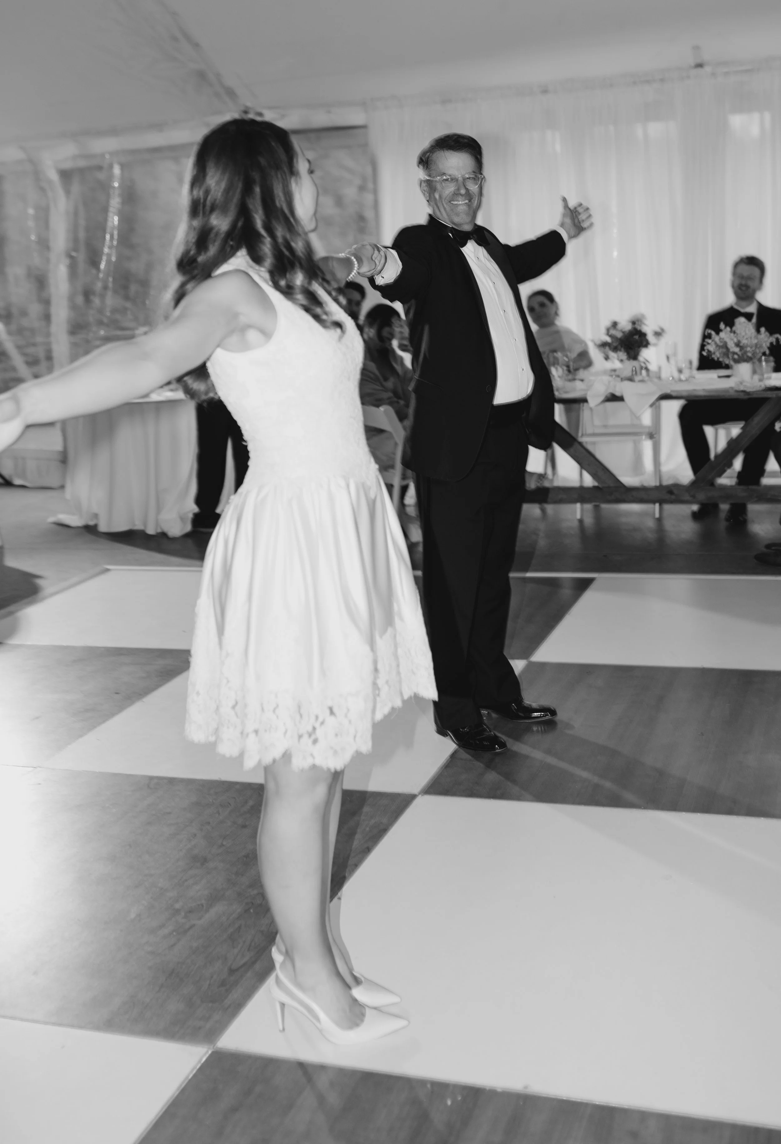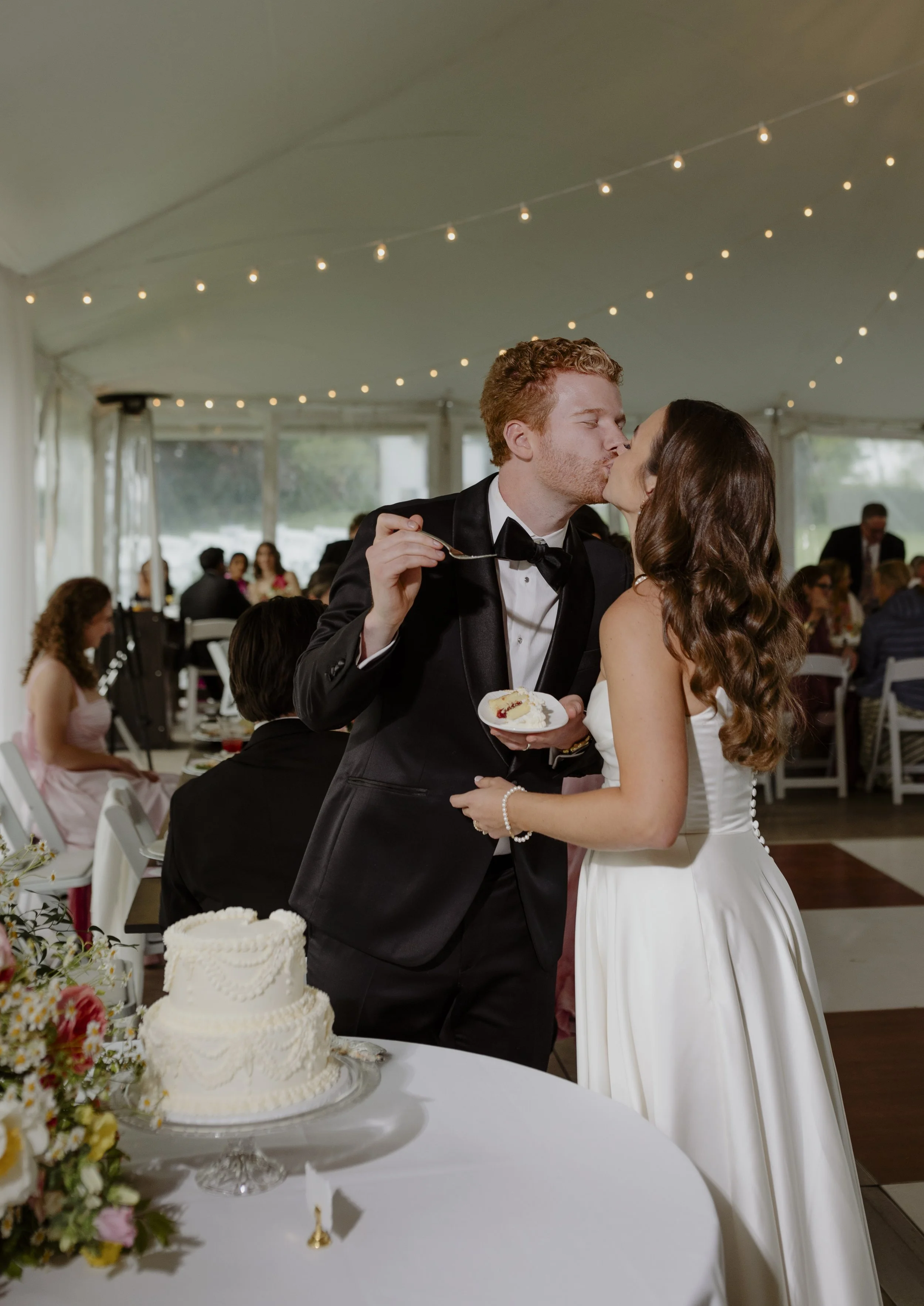 after dinner, maddy and Brendan cut their cake, celebrating with a kiss. afterwards, maddy made an outfit switch and changed into a custom mini dress created from her mother’s wedding gown. she had her first dance with her dad in the dress that her mom wore to marry him, sharing such a special and full circle moment. Brendan shared a fun, energetic first dance with his mom that perfectly encapsulated their relationship. then, the dance floor opened up for a night to never forget.